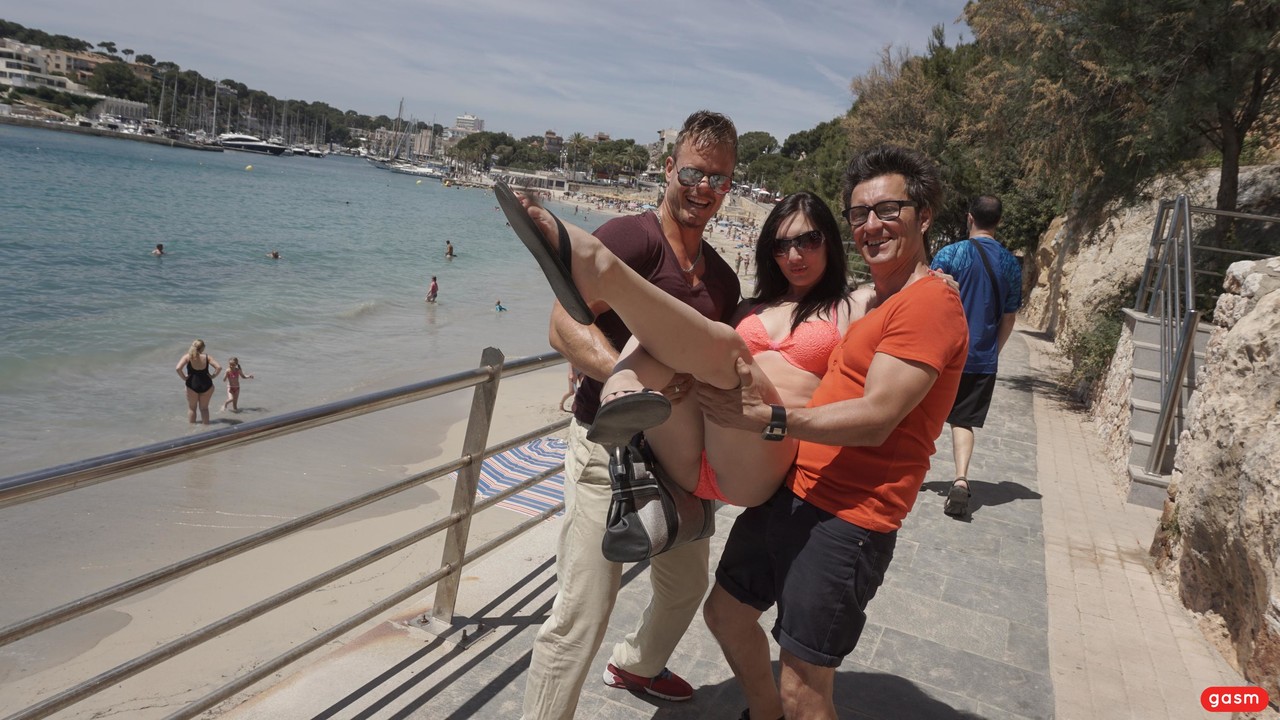 Blonde nympho with big tits Vera Jarw getting double teamed in a threesome